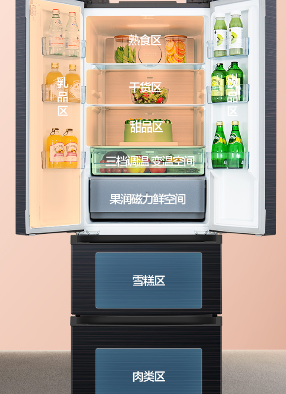 • 美的(Midea)323升 果润维C多门四门对开母婴保鲜冰箱双变频一级风冷无霜智能家用小电冰箱BCD-323WFPZM(E)