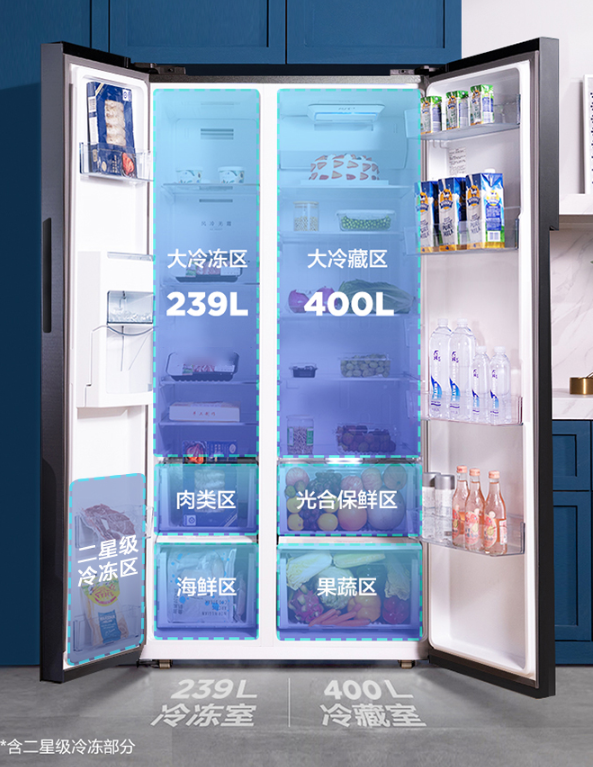 • 美的(Midea)639升对开门双开门冰箱19分钟急速净味除菌风冷无霜一级双变频智能家用速冷速冻BCD-639WKPZM(E)
