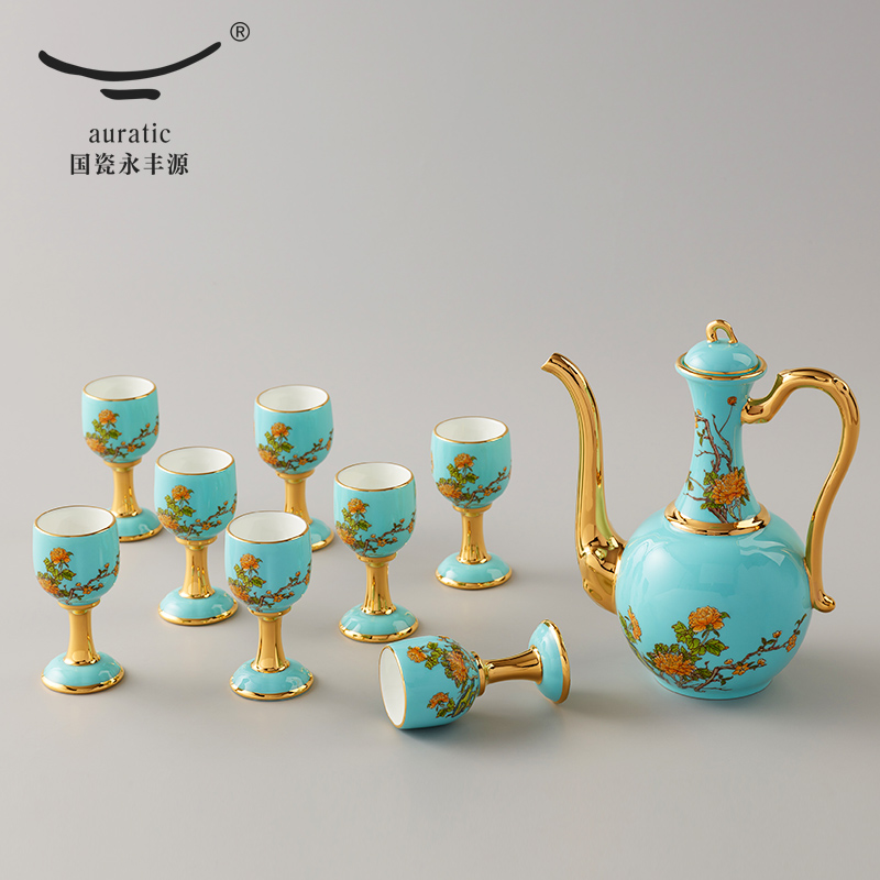 • 国瓷永丰源 夫人瓷 10头酒具白酒杯酒壶陶瓷酒壶家用套装中式仿古