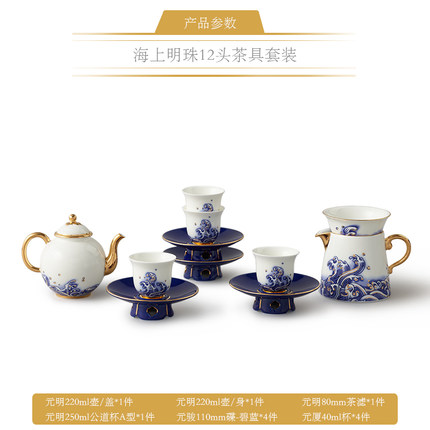 • 国瓷永丰源 先生瓷海上明珠 12头陶瓷茶具套装 茶壶杯碟套 茶漏