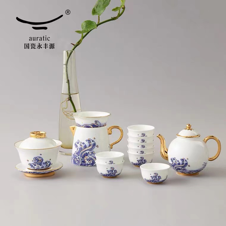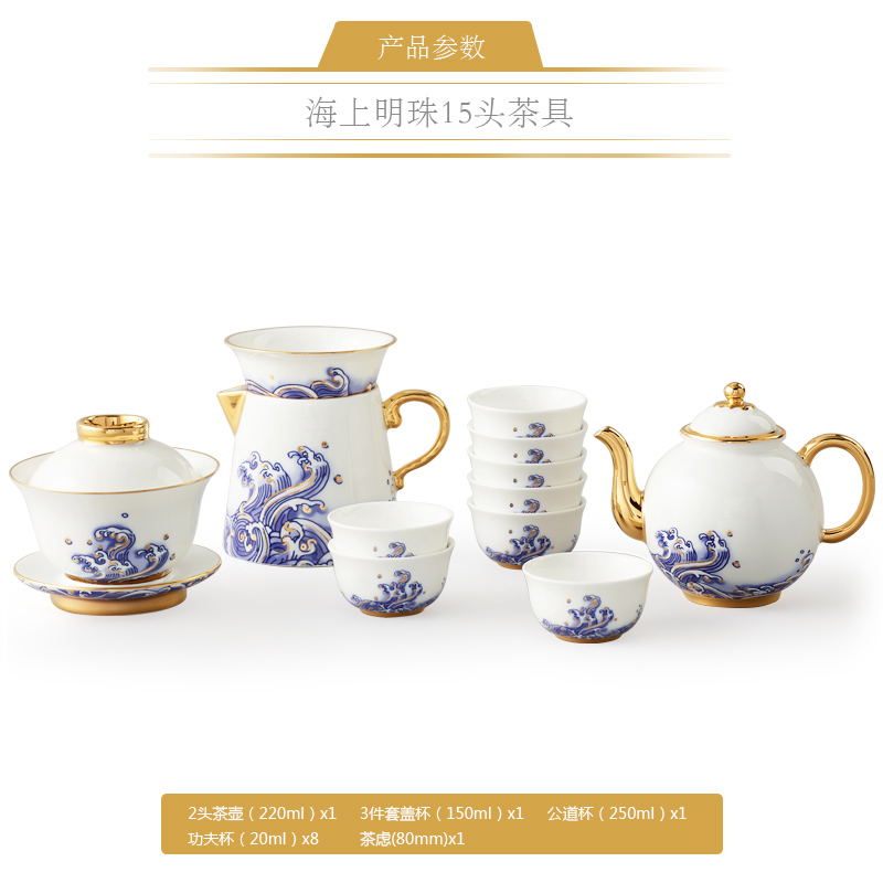 • 国瓷永丰源 先生瓷海上明珠 15头功夫茶具套装盖碗茶杯壶
