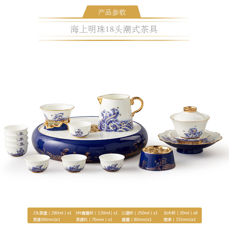 • 国瓷永丰源 先生瓷海上明珠18头陶瓷功夫茶具 潮式家用礼品套装