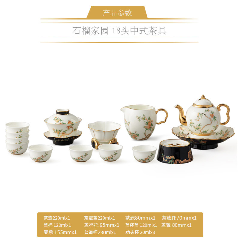 • 国瓷永丰源夫人瓷石榴家园/18头 陶瓷功夫茶具套装茶杯具茶壶盖碗