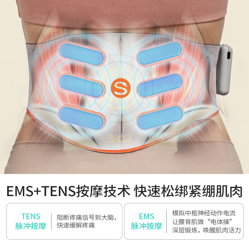• SKG腰部按摩器 腰椎按摩仪 热敷护腰仪 按摩腰带 便携APP操控 W5浅蓝色