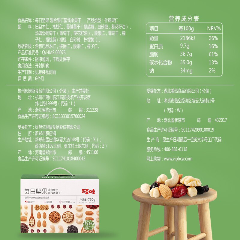 • 百草味 每日坚果礼盒 混合零食大礼包 干果巴旦木核桃腰果送女友送礼团购年货 活力鲜鲜款750g/30袋