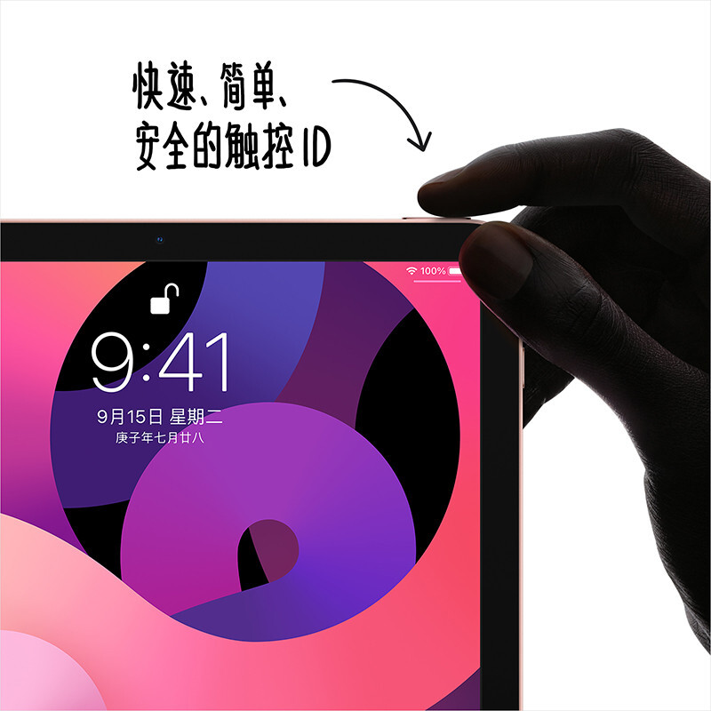 Apple iPad Air 10.9英寸 平板电脑( 2020年款 64G WLAN版/A14芯片/触控ID/全面屏MYFP2CH/A)玫瑰金色