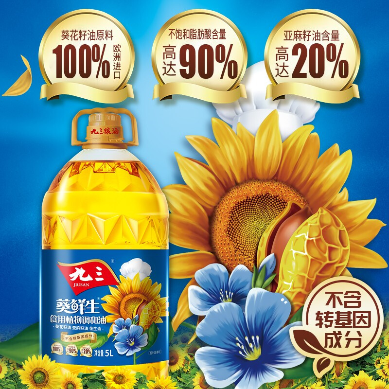• 九三 食用油 葵鲜生食用植物调和油(含葵花籽70%、亚麻籽20%、花生油10%)