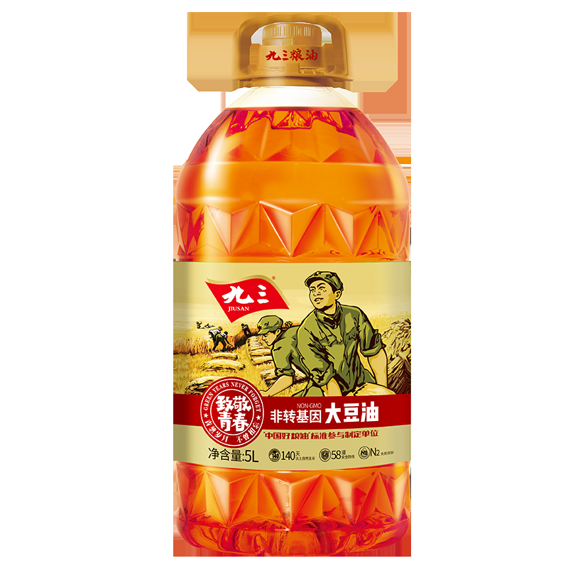 九三非转基因 致青春系列三级大豆油5L*2桶 食用油