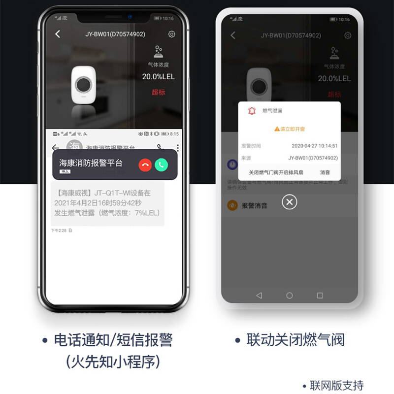 • 海康威视HIKVISION燃气报警器手机远程天然气泄露探测器甲烷CH₄餐厅厨房可过消防检查3C认证JT-Q1T-WI