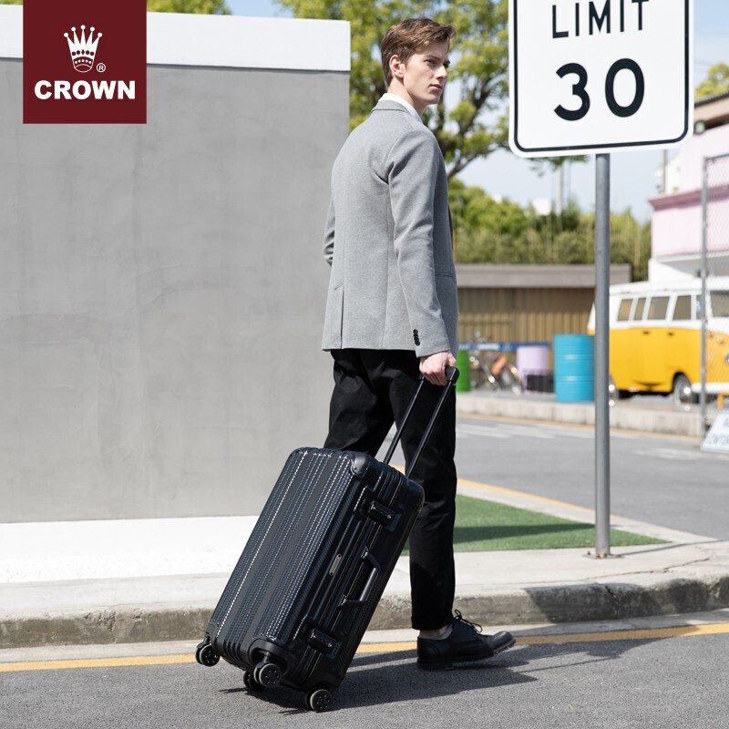 CROWN皇冠铝框拉杆箱 行李箱旅行箱铝框拉杆箱密码箱出差商务 坚固防刮铝框行李箱 5195-29英寸-黑色