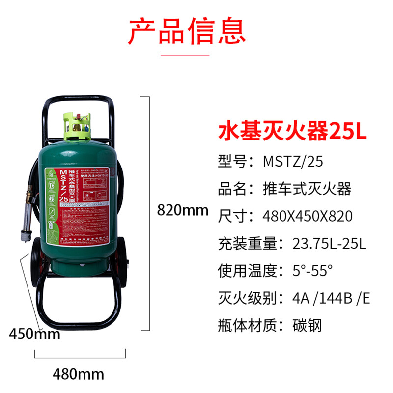 • 普龙(pl)灭火器 25L水基灭火器 推车式水基灭火器 可灭电火家用商用灭火器 酒店厂房消防水基灭火器车载